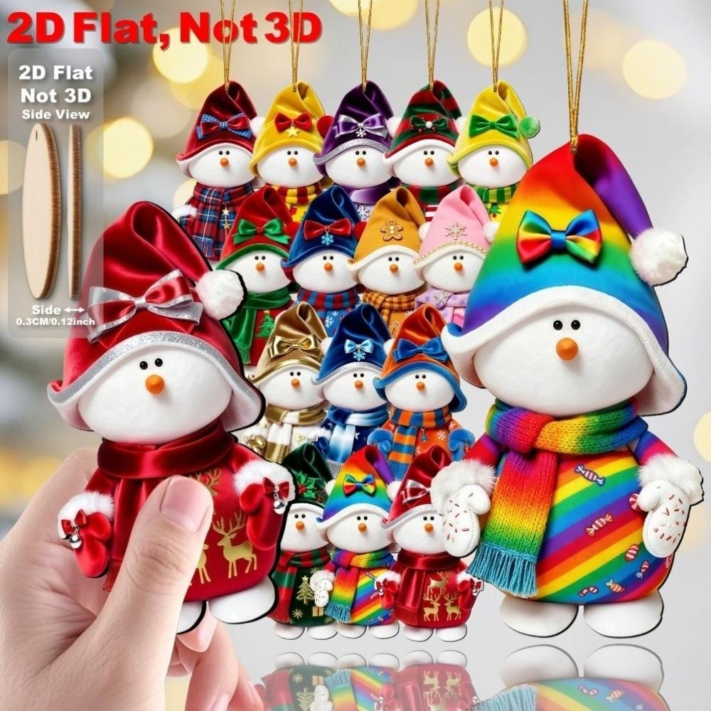 15Pcs 2D Colorful Christmas Snowman Doll Ornaments Rustic Wooden Hanging Decoration Cartoon Wooden Pendant Holiday Decor