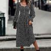 Herbstmode Damen Kleid mit quadratischem Ausschnitt und kleinem Punktmuster