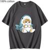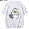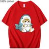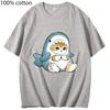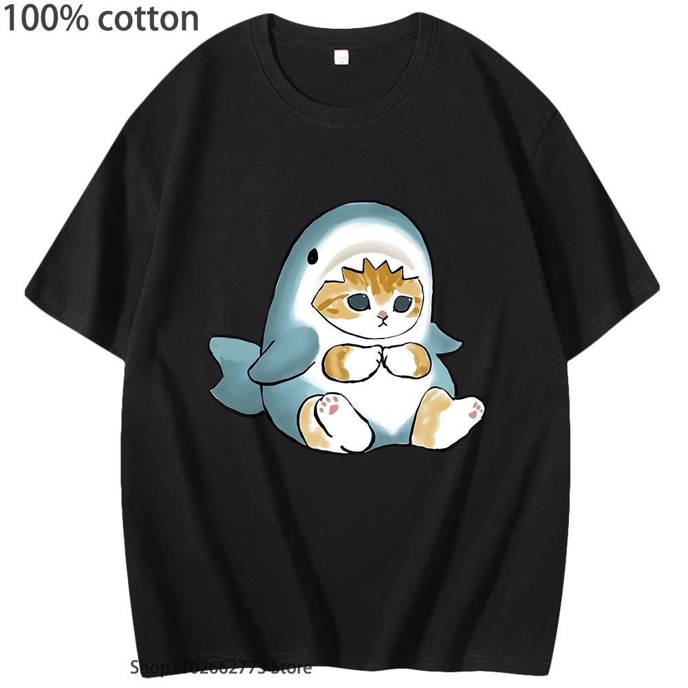 Loviness Katzenhai T-Shirts für Mädchen Niedliche Katzen Print T-Shirt 100% Baumwolle Sommer Rundhals T-Shirts Ästhetisch Kurzarm