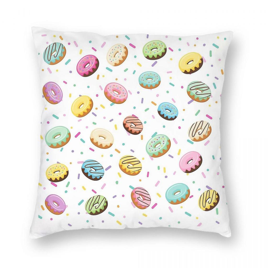 Donuts Sprinkles Square Pillowcase Polyester Linen Velvet Printed Zip Decorative Throw Pillow Case Room Cushion Cover