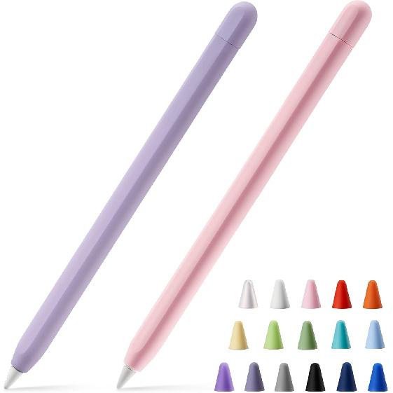 LINGXIU 2 Pack Silicone Case Cover Compatible with Apple Pencil 2nd Generation, Slim Lightweight Pencil Case Skin Sleeve Accessories and 16 Pcs Nib
