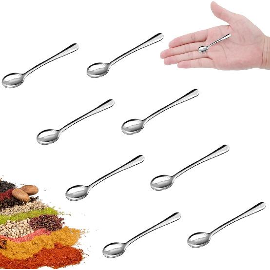Small Spoons Mini Set - 8 Pcs Tiny Stainless Steel Spoons for Spices, Salt, Sugar, Pepper, and Honey - Food-Grade 304 Mini Condiment Scoops(8 Pcs
