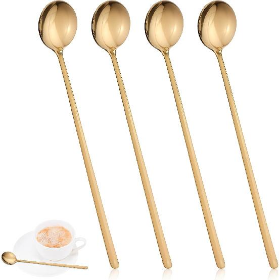 4 Pack Gold Coffee Stir Spoons for Coffee Bar Long Espresso Stirring Spoon Teaspoons Cocktail Tea Mixing Spoon 6.7 Inches Ice Stainless Steel