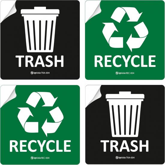 IGNIXIA (Pack of 04 Recycle and Trash Sign Decals self Adhesive - Recycling Stickers Recycle and Trash Sticker for Trash can with Over Lamination -
