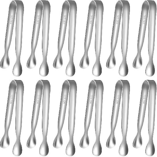 HOTEC 12-Pack Mini Sugar Tongs Stainless Steel Ice Tongs 4.3Inch Serving Tongs for Coffee Bar, Tea Party, Appetizers, Desserts, Buffet – Food-Grade