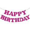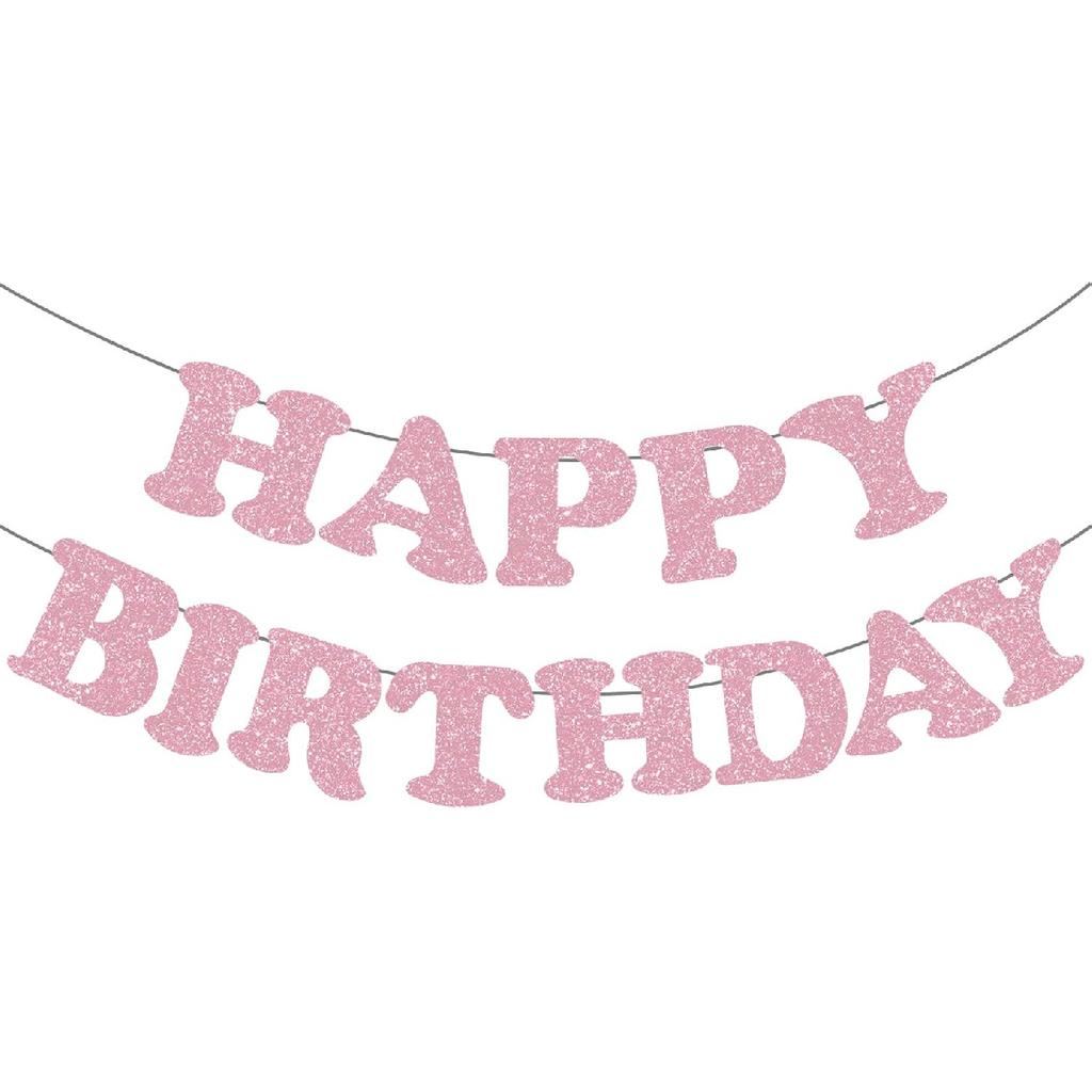 Whaline Light Pink Glitter Happy Birthday Banner Hot Girl Party Decoration Summer Hanging Garland for Pink Birthday Baby Shower Party Backdrop