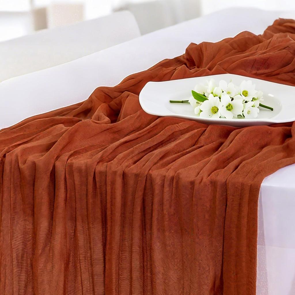 Thanksgiving Cheesecloth Table Runner - 9.8 FT Terracotta Table Cloth Spring Decor for Home Fall Wedding Table Decor for Bridal Shower Easter Runner
