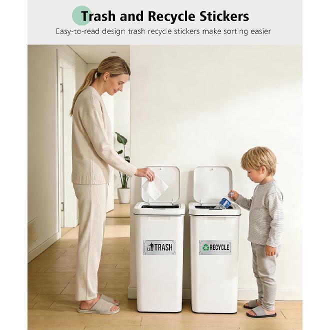 Trash and Recycle Stickers 8 Pack, Waterproof Recycle Sticker and Trash Stickers, Trash Bin Labels Combo for Home Indoor Outdoor Office Garbage Can
