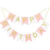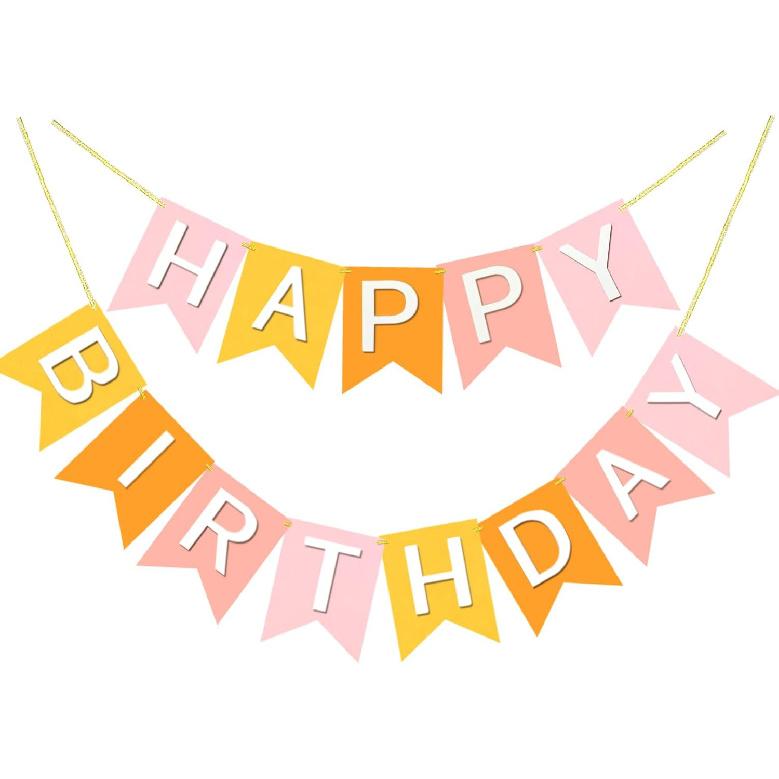 Pink Orange Happy Birthday Banner Girls Birthday Theme Party Signs Decorations Supplies Pre - Strung Handmade Garland Indoor & Outdoor
