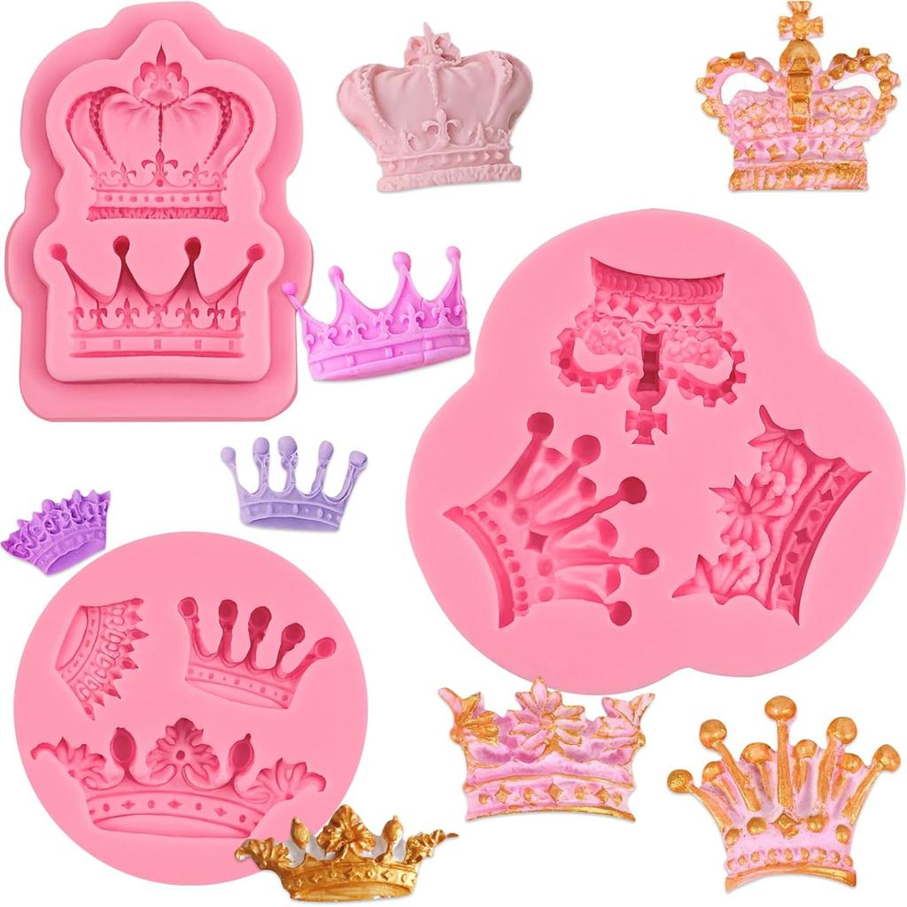 Mini Crown Fondant Molds 3pcs, 3D Crown Chocolate Cake Decorating Silicone Molds, for Dessert Display, Cupcake Toppers, Candy, Sugar Craft, Cookies,