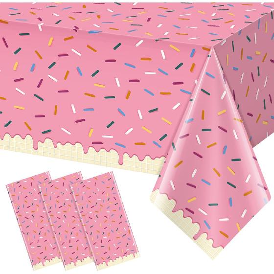package includes: you will receive 3 pieces plastic sprinkle donut themed tablecloth, which are enough quantity to use and replace