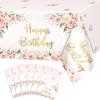 Avezano 3 Pcs Rose Gold Party Decorations Pink Floral Happy Birthday Tablecloths for Girls Women Birthday Party Supplies 108 x 54 Inch
