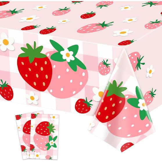 Package Included: each package includes 2 pink strawberry tablecloths measuring 54 inches x 108 inches