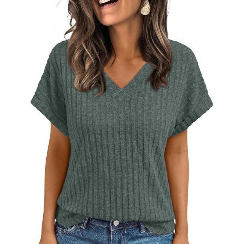 Summer Tops Women's Short Sleeve Casual V Neck Pullover T-Shirt