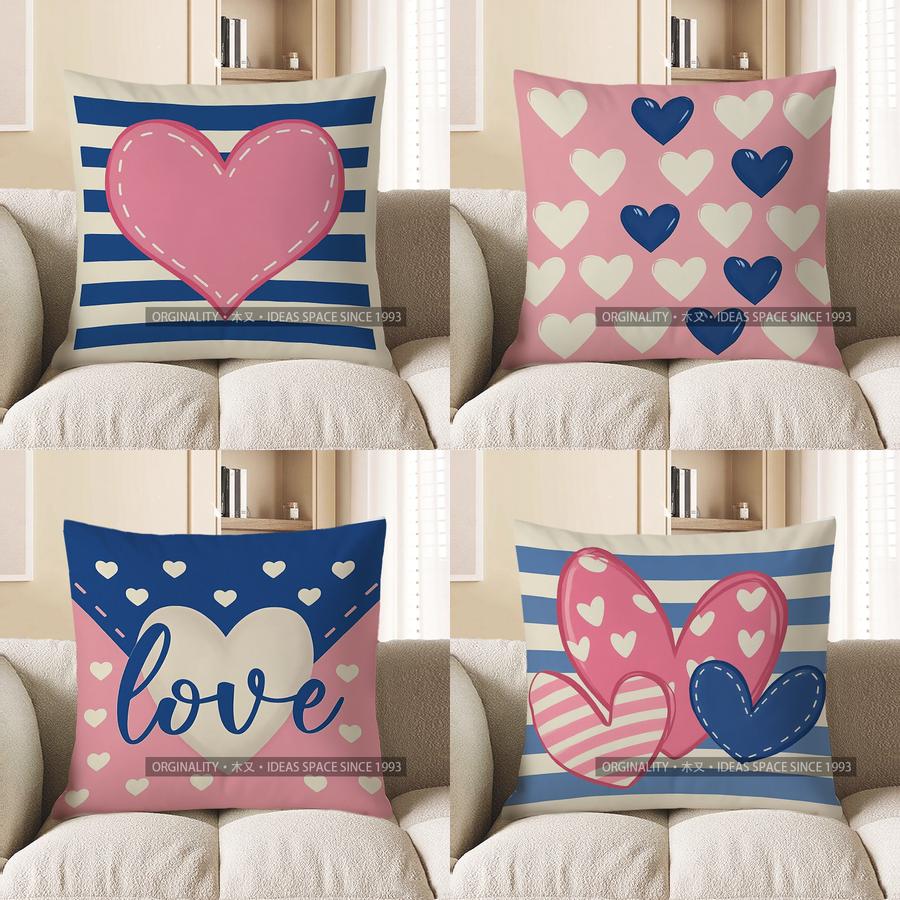 Home Decor Pink Heart On Blue Stripes Cushion Cover Pattern Cushion Cover Suitable For Sofa Bedroom Car Pillow Cover