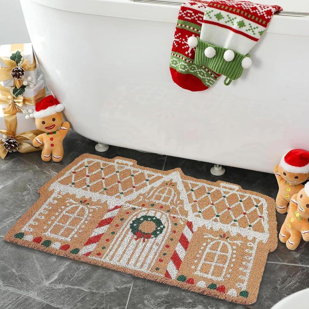 Weihnachts-Lebkuchenhaus Fußmatte Eingang Rutschfest Wasserabsorbierend Leicht zu Reinigen Festliche Atmosphäre Weihnachtsdekoration
