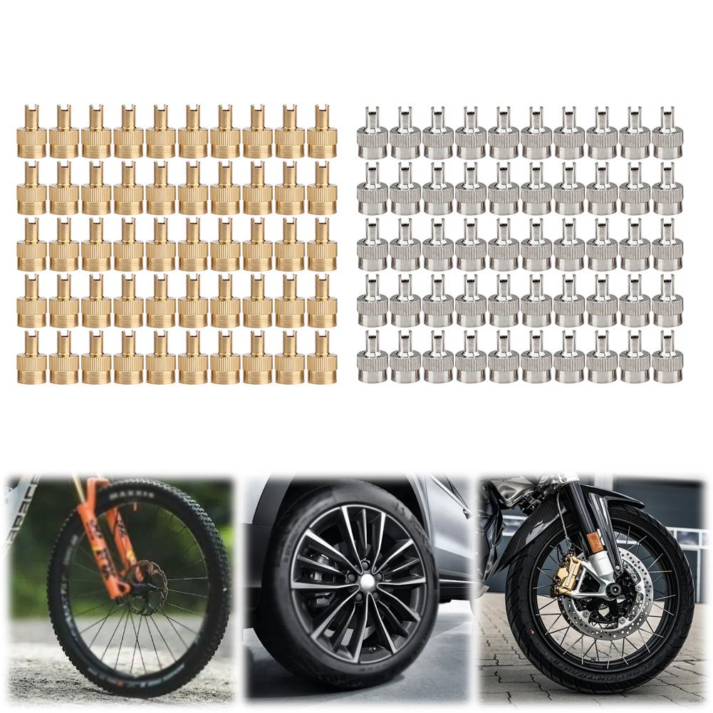 50Pcs Tire Valve Air Dust Cover Stem Caps Leak-Proof Slotted Slot Valve Stem Caps Copper for Cars SUV Trucks Motorcycle Bicycle