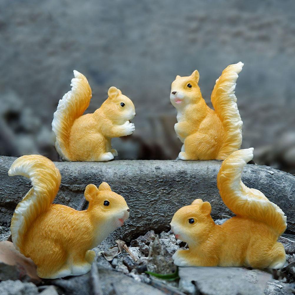 4 Stück Eichhörnchen Harz Handwerk Ornamente Miniatur Kleine Eichhörnchen Dekorationen für Garten Bonsai Sukkulenten Pflanzer Kreatives Harz
