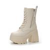 Damenstiefel, hochwertige, lässige Lederstiefel mit Plateauabsatz und seitlichem Reißverschluss, dickem Absatz, Stiefeletten, Botas Mujer