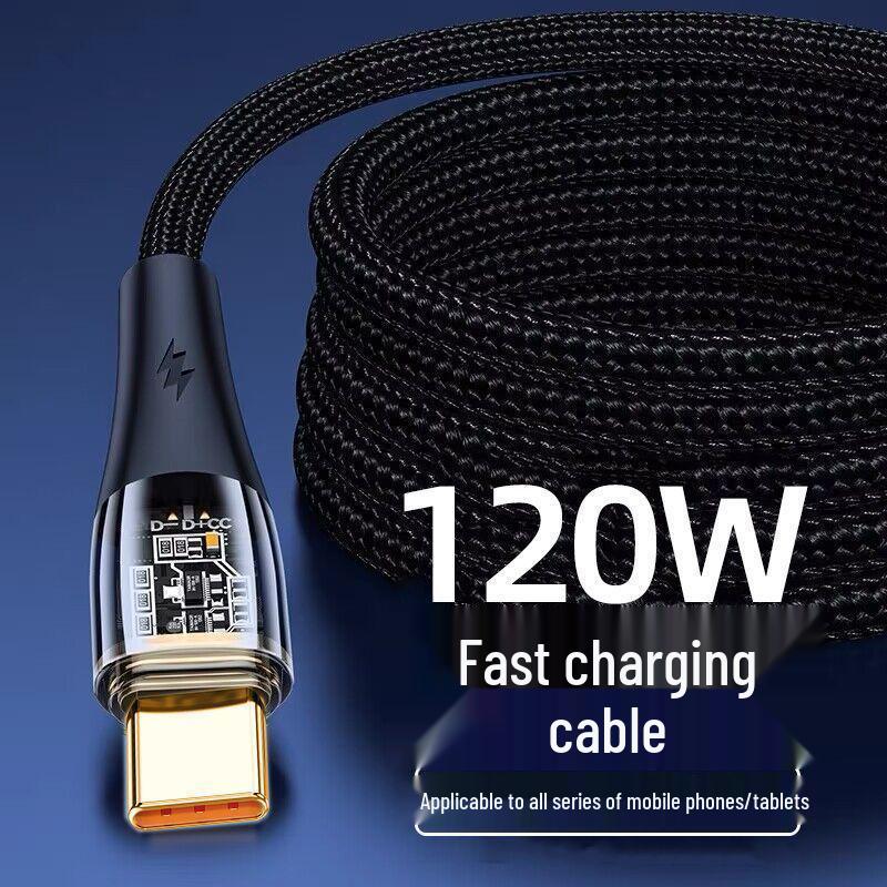 Transparente 120W Super-Schnellladekabel mit zwei Typ-C PD Anschlüssen, kompatibel mit Apple 15 & Huawei