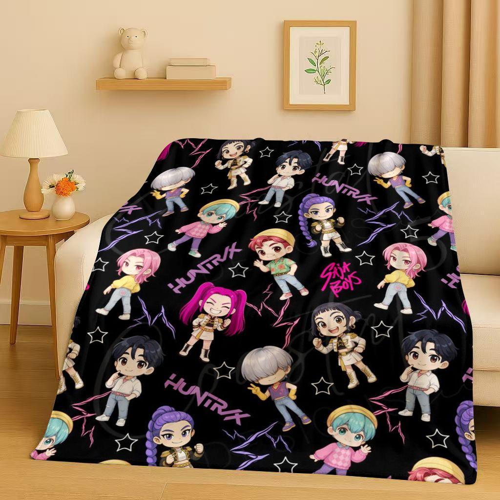 2026 Neue Cartoon Kpop Dämonenjäger Zoey Rumi Mira Musik Flanelldecke, Ultraweiche Plüschdecke für Zuhause Schlafzimmer Bett Sofa Abdeckung