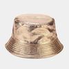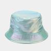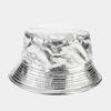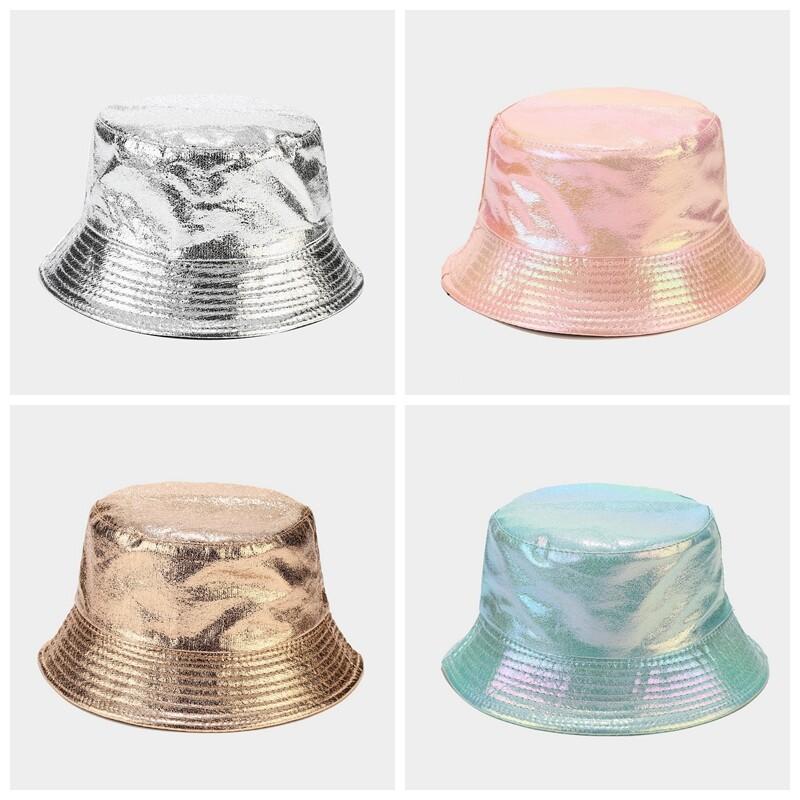 Women Girl Laser PU Faux Leather Bucket Hat Cap Shiny Sunhat Foldable Casual