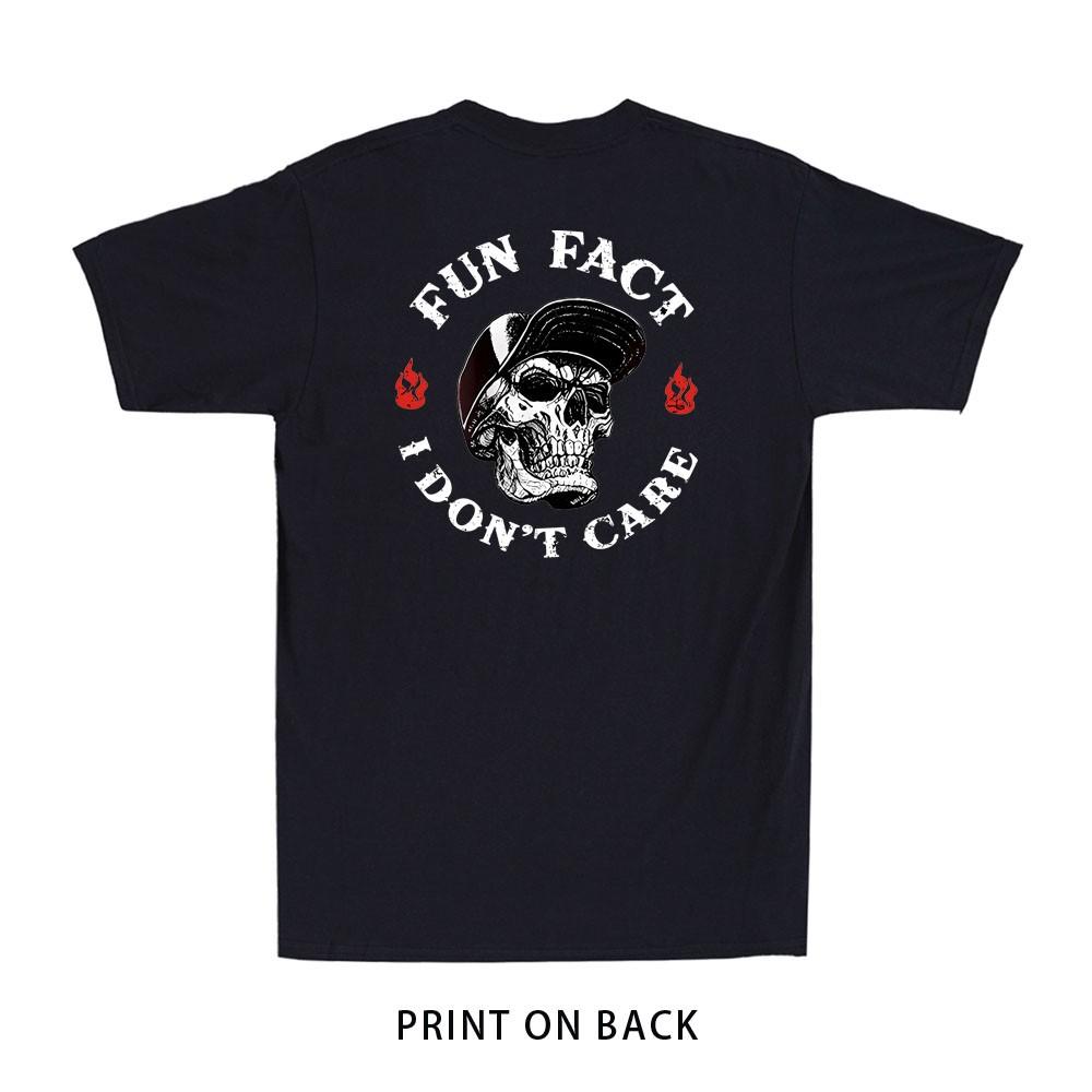 Fun Fact I Don't Care Funny Skeleton Saying Retro (Print ON BACK) Men's T-Shirt Unisex T-Shirt