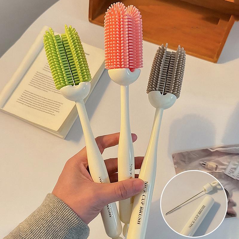 3-in-1 Silikon-Milchflaschenbürste Langer Griff Wasserglas Tasse Reinigungsbürste Multifunktionales Küchenreinigungswerkzeug