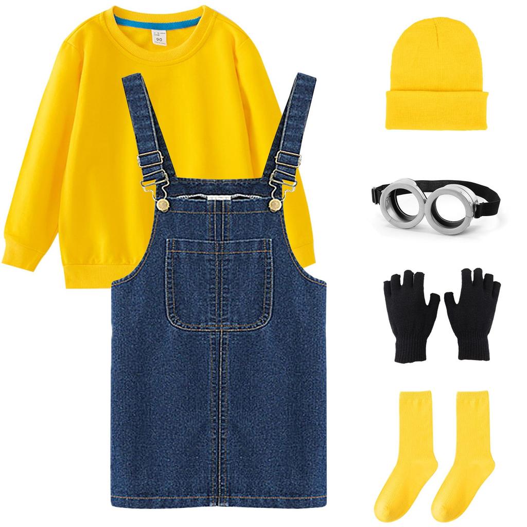 Halloween Costume Little Yellow Man Knit and Goggles Kids' Set Overalls, Hat, Gloves, (5-Piece Set)