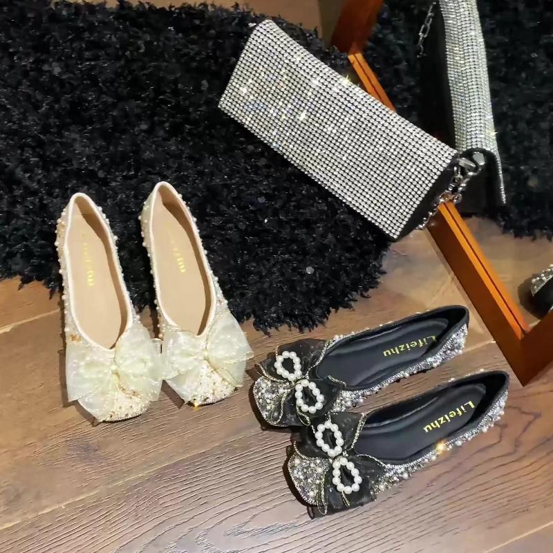 Neue Mode Damenschuhe Flach Frühling Sommer Kristall Schleife Runde Spitze Bootsschuhe Mädchen Große Größe Slipper Loafer