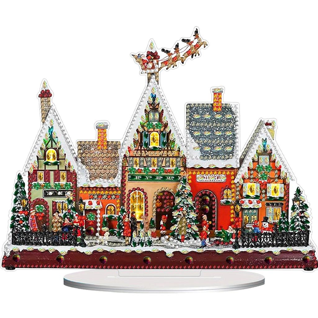 2D Flachdruck Winter Weihnachtshaus DIY Schreibtisch Diamantmalerei Kits Diamantmalerei Schreibtisch Ornamente Kit für Erwachsene Anfänger