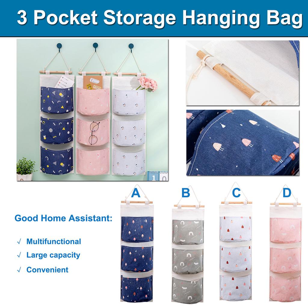 Wandhängetasche, 3-Taschen-Aufhänger, Badezimmer-Baby-Hängetasche, faltbare 3-Taschen-Tasche