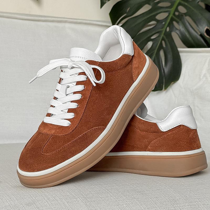 New Men Genuine Leather Casual Shoes Street Fashion Flat Skate Shoes Young Man Lace-up Sneakers