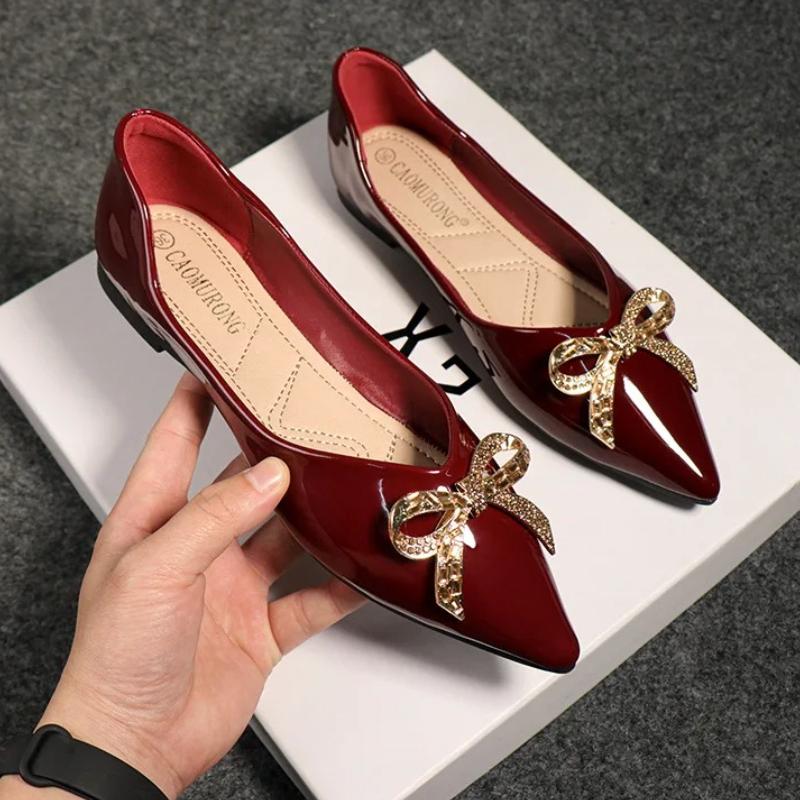 Neue Damen Flache Schuhe Mode Lackleder Goldene Schleife Freizeit Schuhe Slip-on Loafer