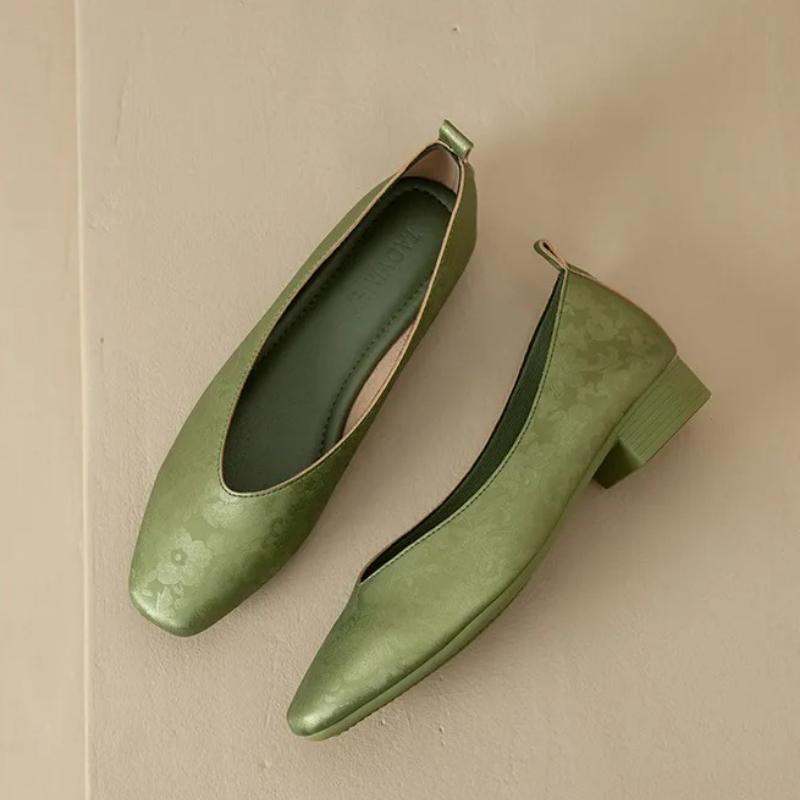 New Women Shoes Low Heel Pumps Genuine Leather Flowers High Heels Shoes Girl Fashion Dress Shoes
