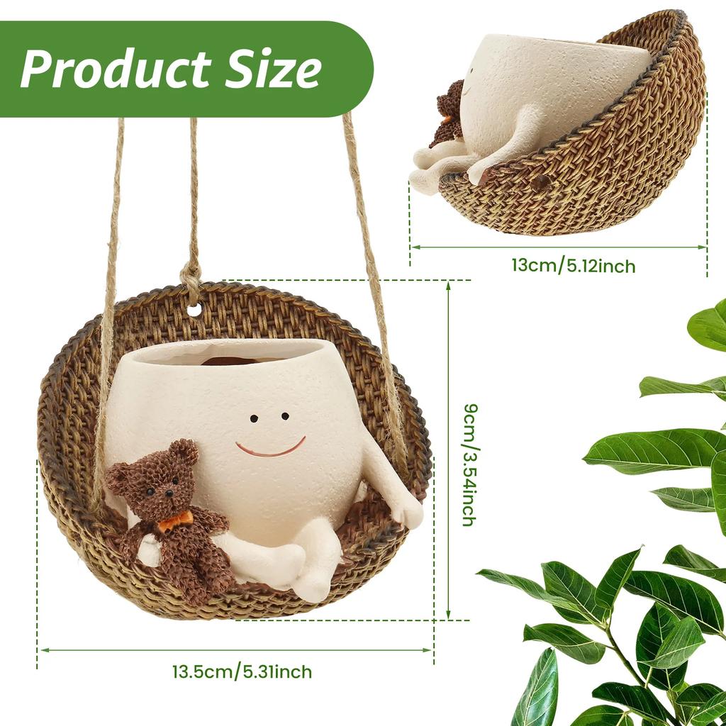 Schwingendes Gesicht Topf Niedlicher Harz Lächeln Gesicht Pflanzgefäß Dekorativer Kleiner Schwingender Topf mit Abzugsloch Zuhause Kreative Schaukelnde Sukkulententöpfe