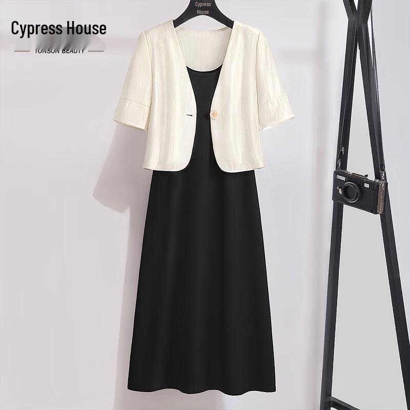 Damen Sommer Kurzarm Jacke & Slipkleid Zweiteiliges Set