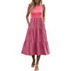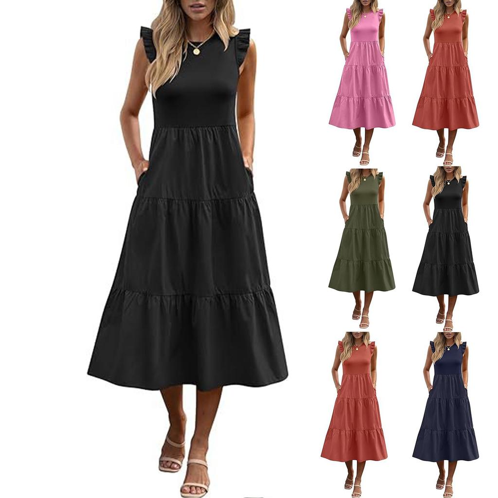 Women's Bohemian Round Neck Ruffle Sleeve Color Summer Casual Dresses