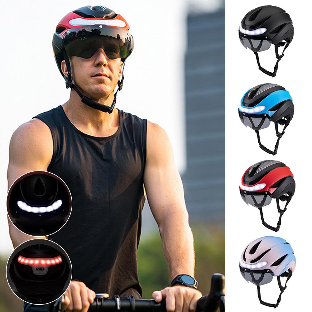 Motorcycle Helmets with Ride Lights Magnetic Goggles Visor Rechargeable LED Night Breathable Light Helmet Safety for Bicycle