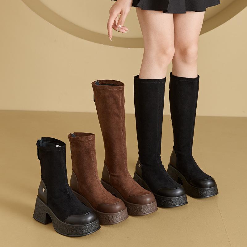 8573-8571 Autumn retro small thick-soled elastic boots thin boots suede Martin boots
