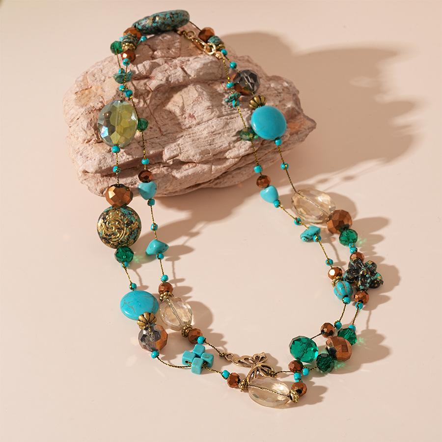 Ethnic style blue color artificial stone geometric multi-layer stacking necklace temperament collarbone necklace