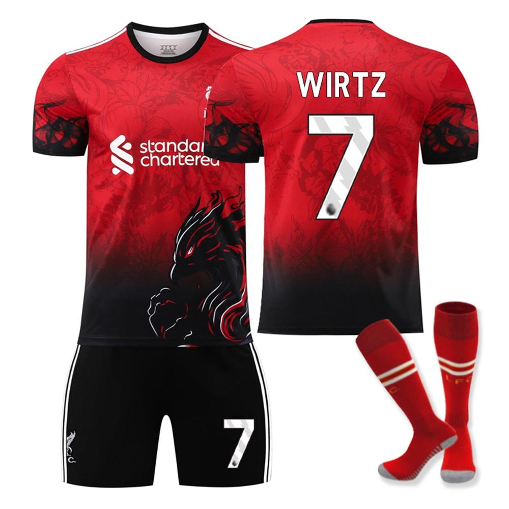Jugendliche Kinder Erwachsene Individueller Name Fußballtrikots 2025-26 Liverpool Rot #7 WIRTZ Trainingsset mit Socken