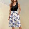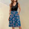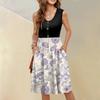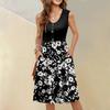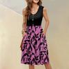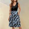 Damen Ärmelloses Lässiges Urlaubs Locker Schwingendes Geometrisches Knopf Midi-Kleid mit Taschen