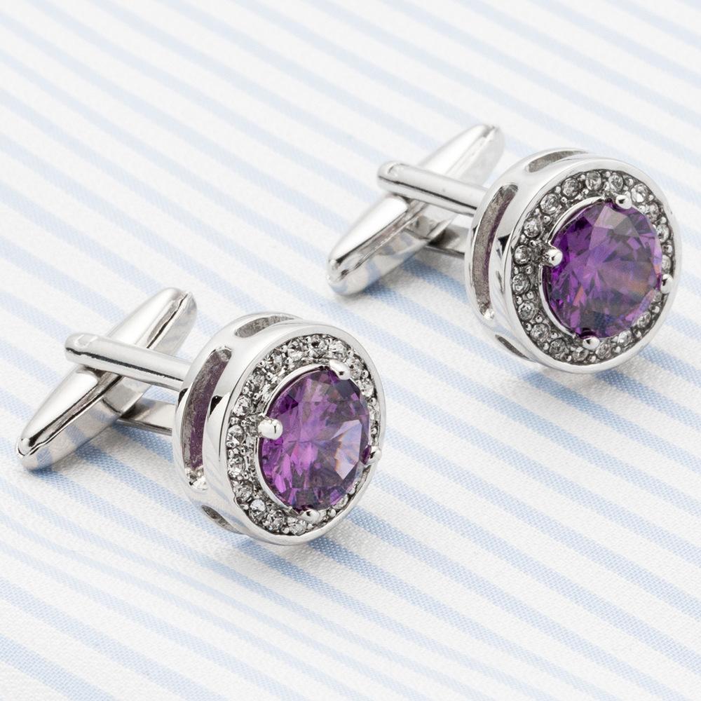 Neue französische Hemdmanschettenknöpfe, Amethyst-Ärmel, Diamant-Manschetten, Knöpfe Manschettenknopf 715