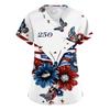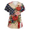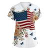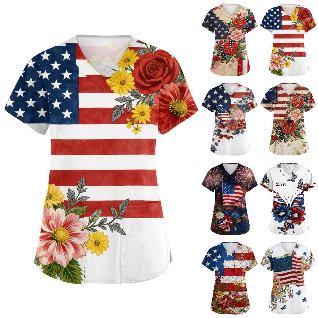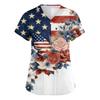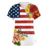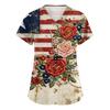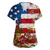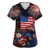 Damen Kurzarm Unabhängigkeitstag Aufdruck V-Ausschnitt Tasche Arbeitskleidung Oberteil