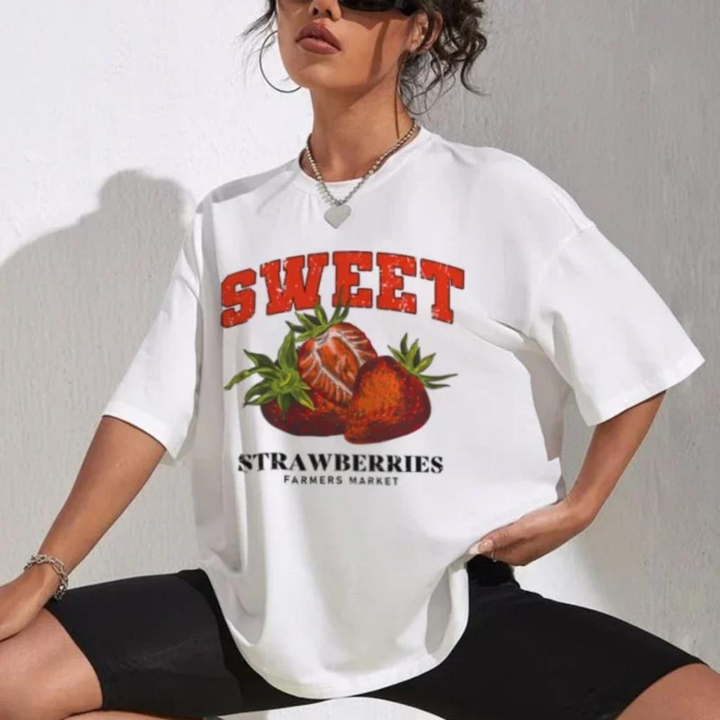 Damen Oversized Retro Erdbeerfrucht Bedrucktes T-Shirt Vintage Ästhetik Streetwear Grafik-T-Shirts Sommer Niedliche Cottagecore Oberteile