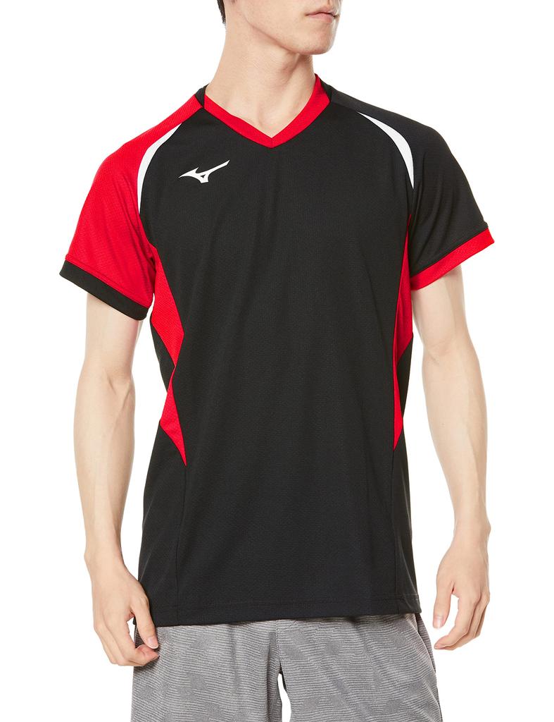 Volleyball Spielshirt, Kurzarm, Feuchtigkeitsableitend, Schnelltrocknend, Für Jugendliche erhältlich, V2MA2112, Unisex, Schwarz x Chinesisches Rot x Weiß, Größe L