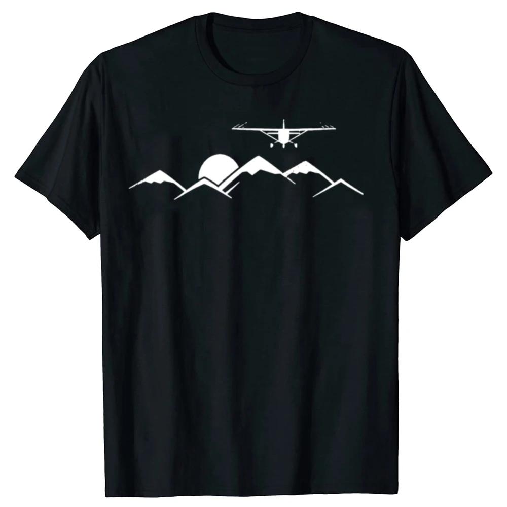 Lustiges Flugzeug über Bergen Geschenk für Piloten T-Shirts Herren Baumwolle Humor Streetwear T-Shirt Kurzarm Unisex Lockere Kleidung