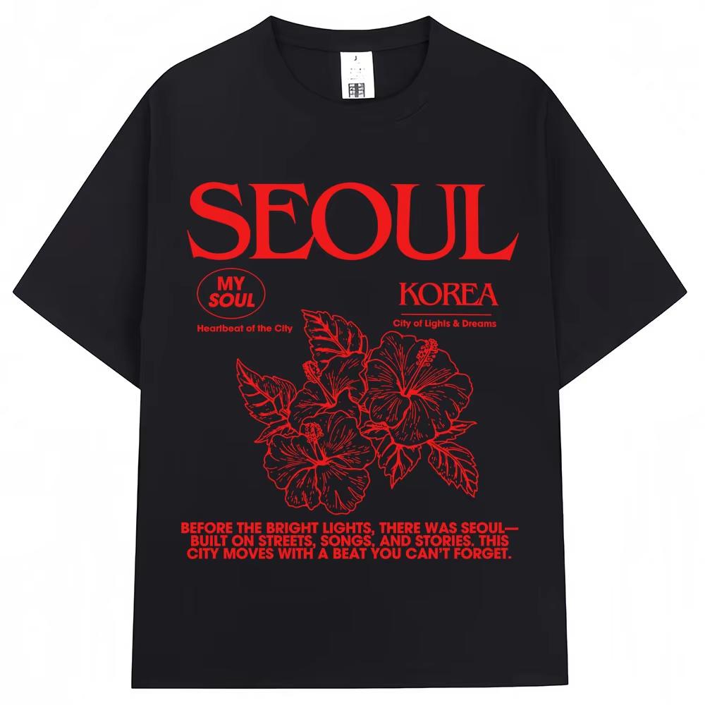 2026 Korean Style Seoul Hibiscus Print Tshirts Men Women Harajuku Fashion Aesthetic T Shirt Cotton Casual Tees Streetwear