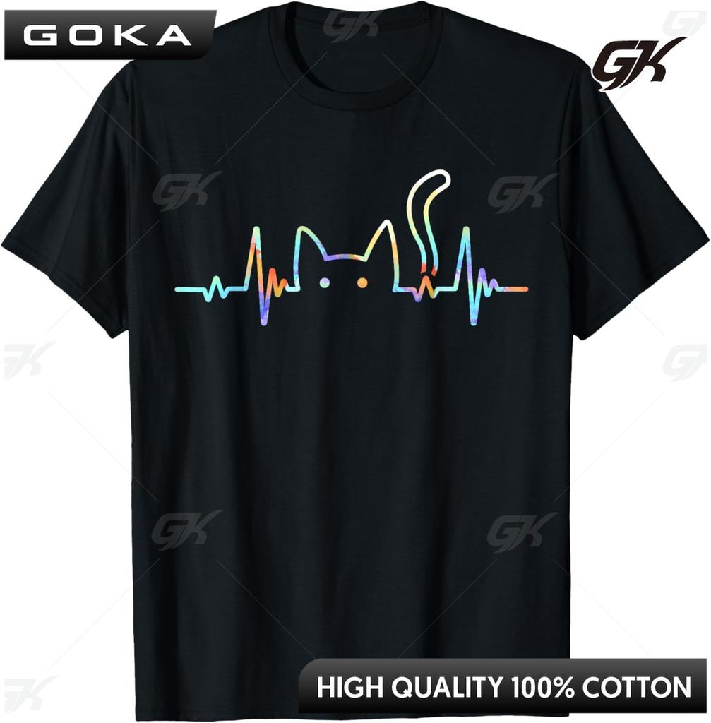 Herzschlag Katzenliebhaber Tier Silhouette Niedliche Katze Aufdruck Grafik T-Shirt Rund Kurzärmelig Tops Modisch Lässig Herrenbekleidung